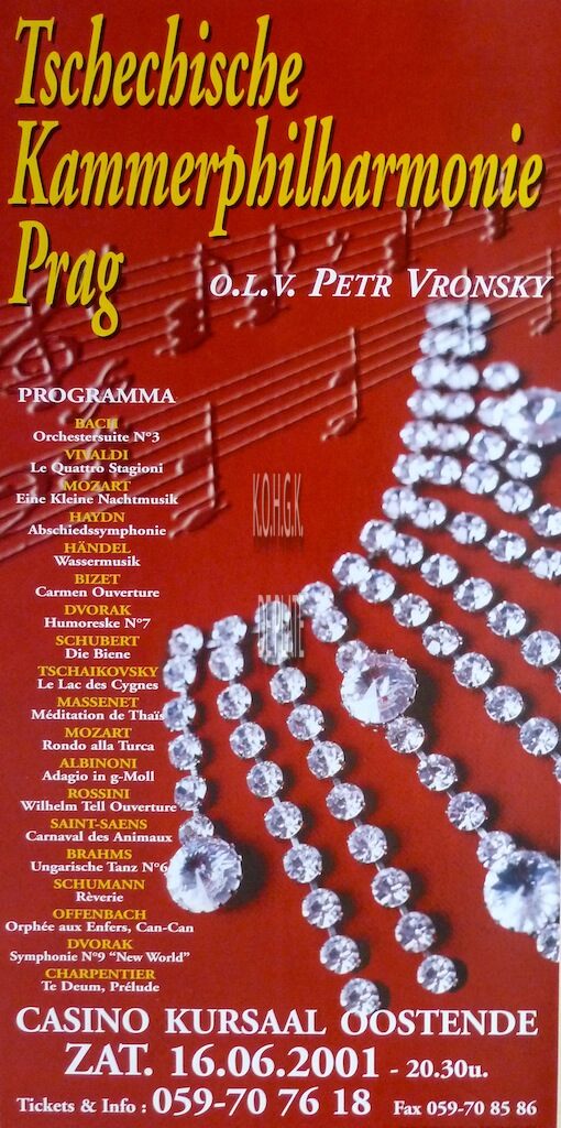 Omschrijving Formaat : 60 x 30 cm. Trefwoorden AFFICHES CASINO-KURSAAL ; CONCERTEN MUZIEK ; CONCERTEN Plaatskenmerk ZOLDER 301 LKA/11/780/11/2001-06/MAP 5 Inventarisnummers 2002/0397 16/ 06/ 2001 Vervaardiger Marc Schelfhout Herkomst TIMMERMANS R. Collectie Muziek Casino-Kursaal Print