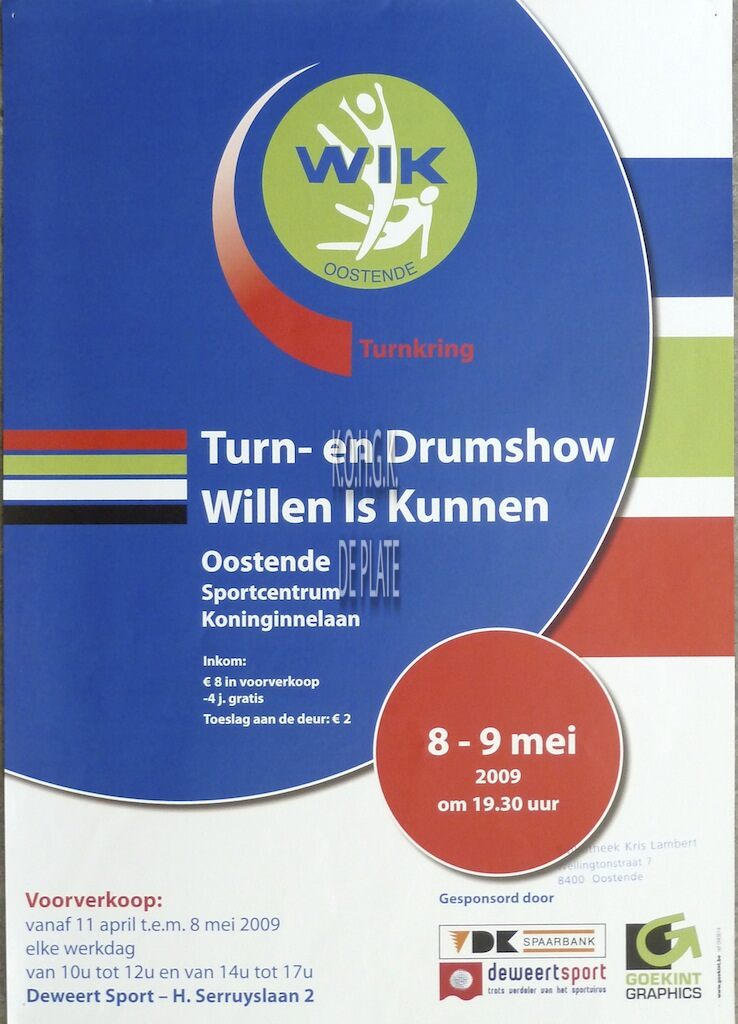 Omschrijving Formaat : 42 x 30 cm. Trefwoorden AFFICHES SPORT ; TURNEN WILLEN IS KUNNEN (TURNEN) WILLEN IS KUNNEN (SHOWKORPS EN DRUMBAND) SPORTCENTRUM DE KONINKLIJKE STALLINGEN Plaatskenmerk ZOLDER 301 LKA/17/616.8/34/2009-05 Inventarisnummers 2009/0953 05/ 2009 Herkomst BIBLIOTHEEK KRIS LAMBERT Collectie Sport Turnen WIK Print