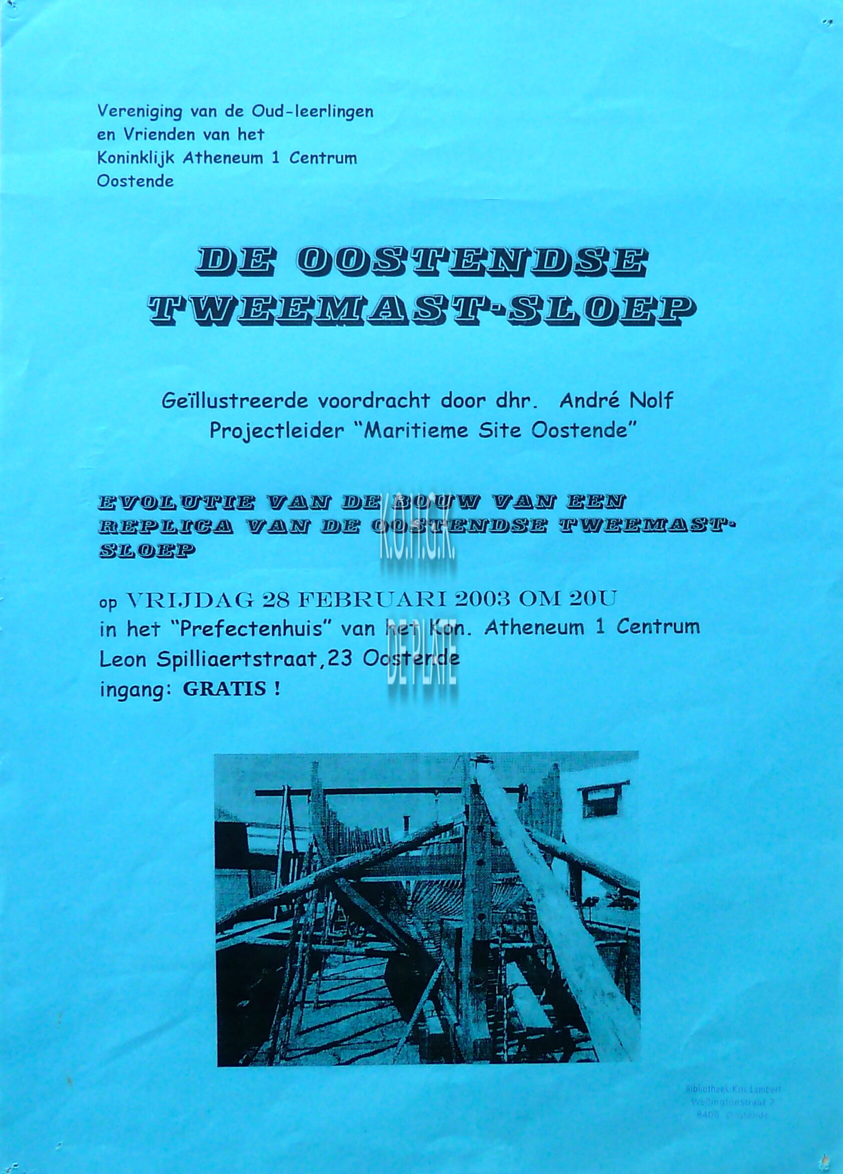 Formaat : 42 x 30 cm. - Geïllustreerde voordracht door dhr. André Nolf, projectleider "Maritieme Site Oostende". Evolutie van de bouw van een replica van de Oostendse tweemastsloep