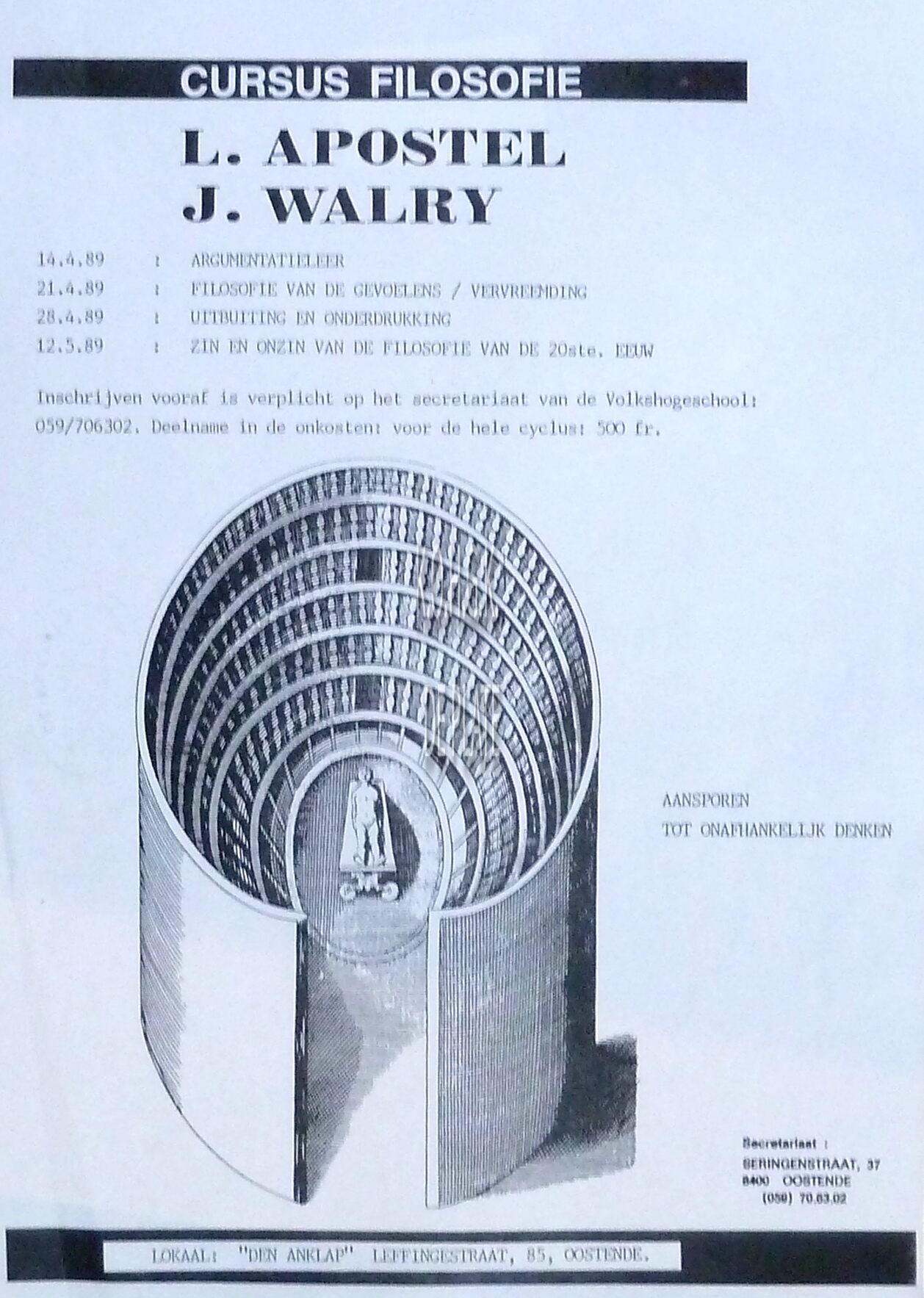 Omschrijving Formaat : 42 x 30 cm. Trefwoorden AFFICHES VOLKSHOGESCHOOL (SOCIO-CULTURELE VERENIGING) CURSUSSEN APOSTEL LEO (1925-1995) (FILOSOOF) WALRY J. (FILOSOOF) DEN ANKLAP (LEFFINGESTRAAT) Plaatskenmerk ZOLDER 301 LKA/03/493.0/34/1989-04 Inventarisnummers 2004/0040 1989 Collectie Socio- Culturele Verenigingen Volwasseneneducatie Volkshogeschool Print