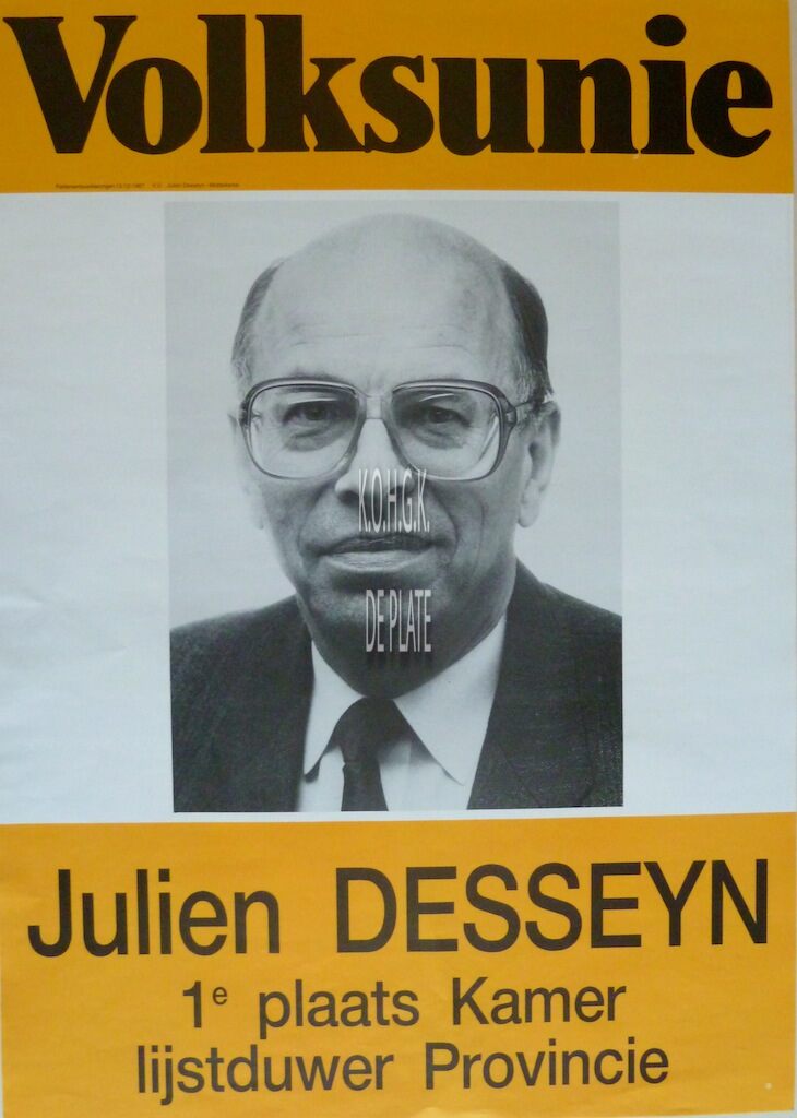 Omschrijving Formaat : 59 x 42 cm. 1e plaats kamer ; Lijstduwer provincie Trefwoorden AFFICHES VOLKSUNIE (POLITIEKE PARTIJ) POLITIEKE PARTIJEN ; VOLKSUNIE DESSEYN JULIEN (POLITICUS) VERKIEZINGEN 1987 Plaatskenmerk ZOLDER 301 LKA/18/330/36/1987-12 Inventarisnummers 2014/5779 13/ 12/ 1987 Uitgever Julien Desseyn Herkomst HUBRECHTSEN FREDDY Collectie Politiek Volksunie Print
