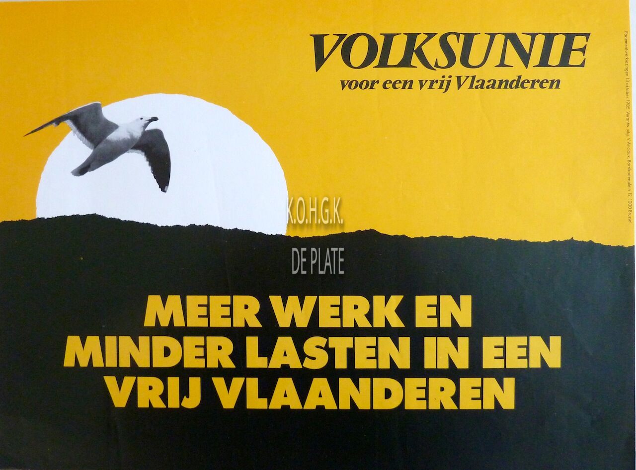 Omschrijving Formaat : 30 x 40 cm. Trefwoorden AFFICHES VOLKSUNIE (POLITIEKE PARTIJ) POLITIEKE PARTIJEN ; VOLKSUNIE VERKIEZINGEN 1985 Plaatskenmerk ZOLDER 301 LKA/18/330/36/0017 Inventarisnummers 2014/5689 13/ 10/ 1985 Uitgever Vic Anciaux Herkomst HUBRECHTSEN FREDDY Collectie Politiek Volksunie Print