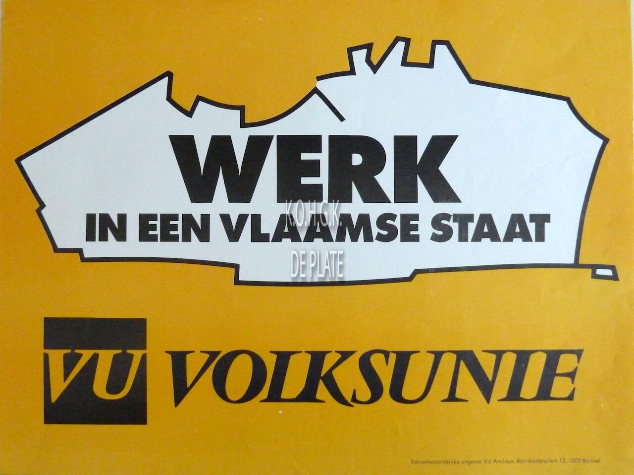 Omschrijving Formaat : 30 x 40 cm. Trefwoorden AFFICHES VOLKSUNIE (POLITIEKE PARTIJ) POLITIEKE PARTIJEN ; VOLKSUNIE Plaatskenmerk ZOLDER 301 LKA/18/330/36/0016 Inventarisnummers 2014/5688 Uitgever Vic Anciaux Herkomst HUBRECHTSEN FREDDY Collectie Politiek Volksunie Print