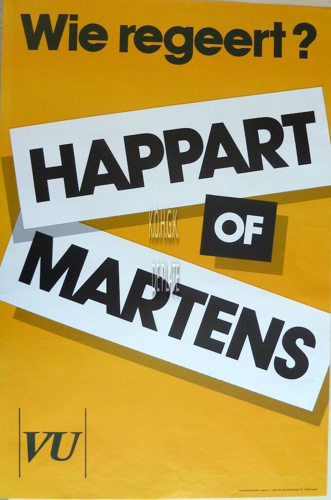 Affiche : Volksunie. Wie regeert? Happart of Martens. …. (?)