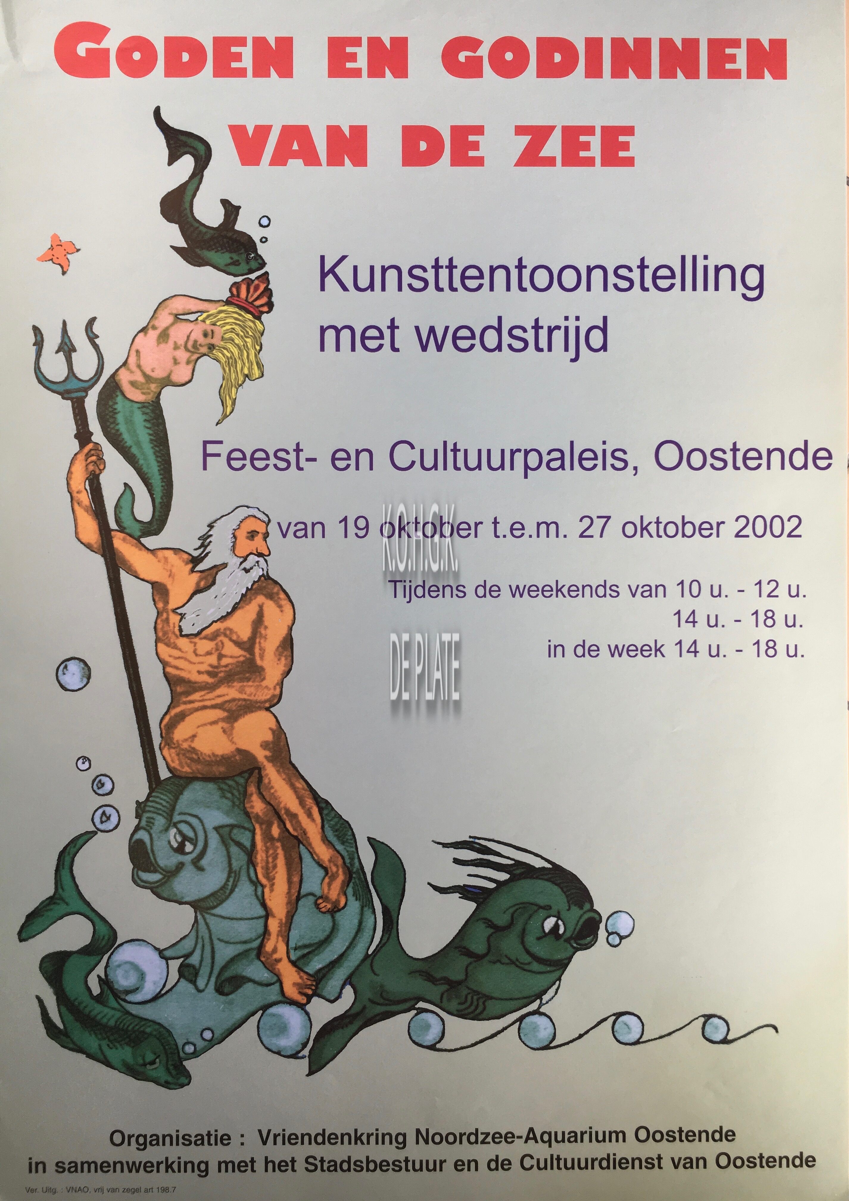 Omschrijving Formaat: 42 x 30 cm. Trefwoorden AFFICHES FEEST- EN CULTUURPALEIS ; TENTOONSTELLINGEN VRIENDENKRING NOORDZEE AQUARIUM ; TENTOONSTELLINGEN KUNSTTENTOONSTELLINGEN GODEN EN GODINNEN VAN DE ZEE (TENTOONSTELLING) Plaatskenmerk ZOLDER 301 LKA/07/700.4/03/2002-10 Inventarisnummers 2018/0309 19/ 10/ 2002 Uitgever VNAO Collectie Tentoonstellingen Feest- en Cultuurpaleis Print