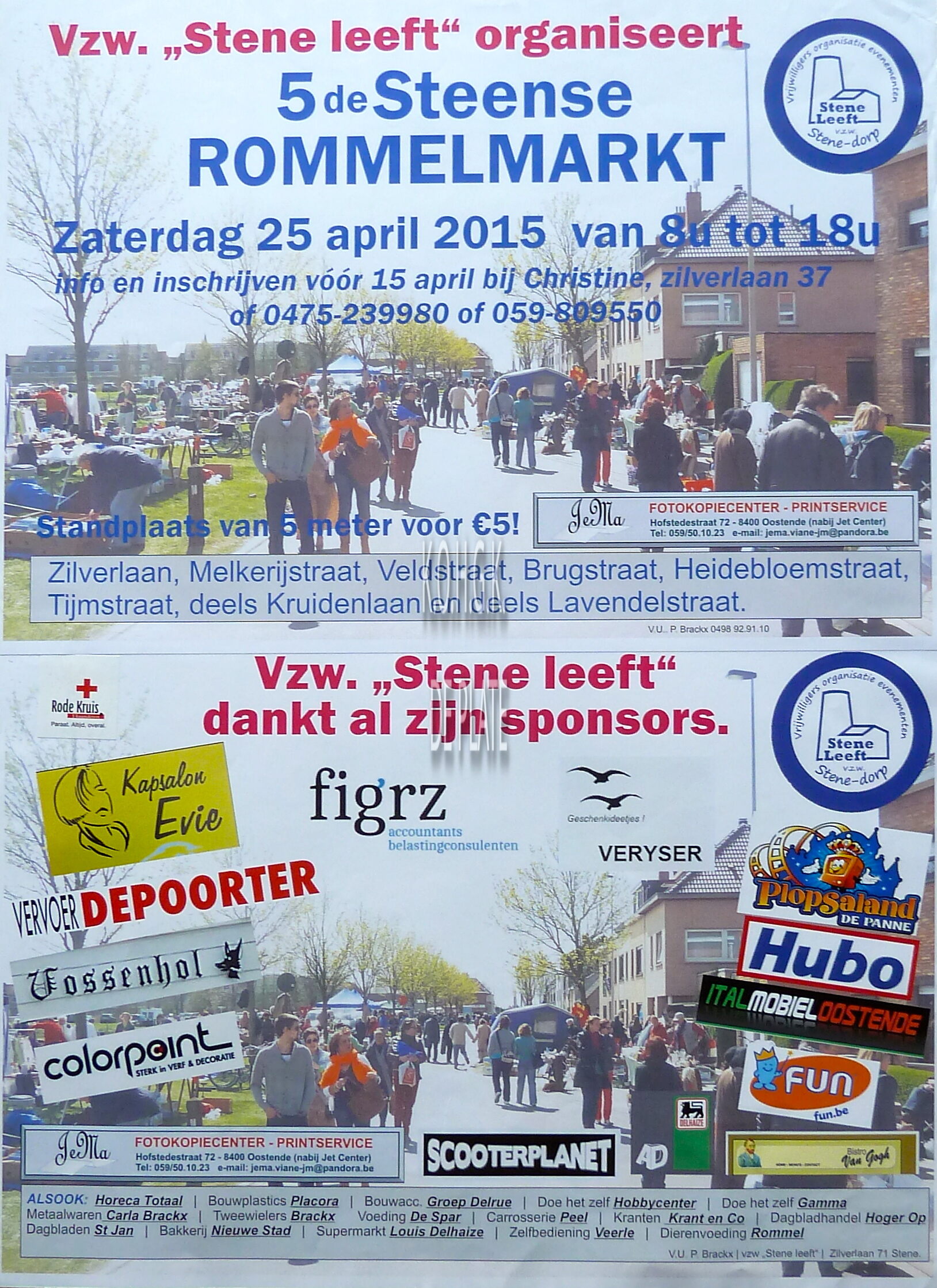 Affiche : Vzw. "Stene leeft". 5de Steense Rommelmarkt. 25/04/2015