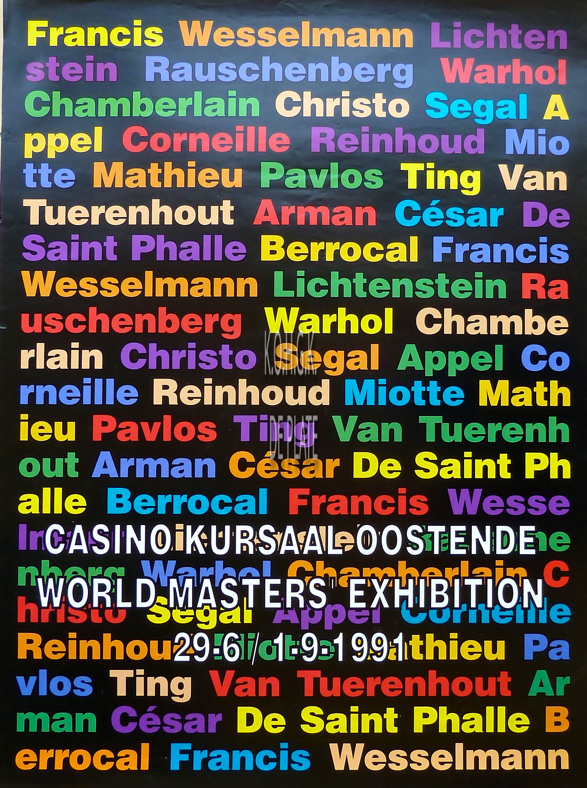 Formaat : 64 x 48 cm. Rauschenberg, Warhol, Chamberlein, Christo, Segal, Appel, Corneille, Reinhoud, Miotte, Mathieu, Pavlos, Ting, Van Tuerenhout, Arman, César, De Saint Phalle, Berrocal