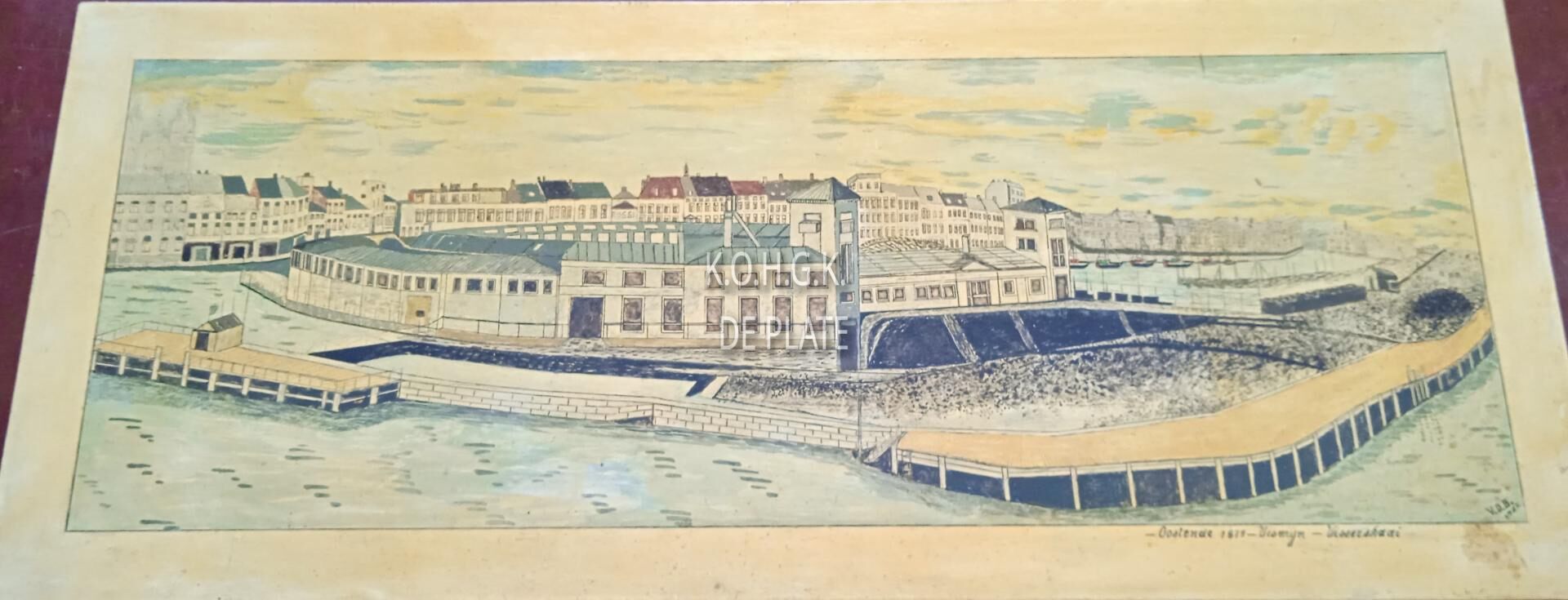 Tekst rechtsonder: Oostende 1879 - Vismijn -Vissers