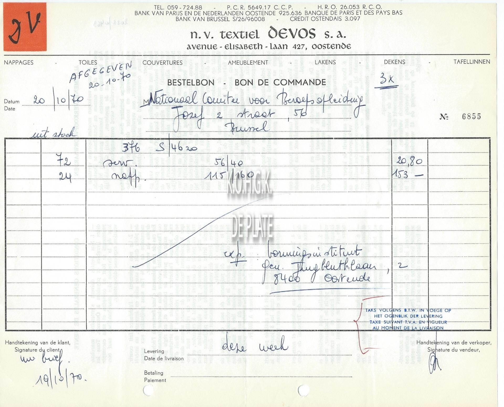 Omschrijving Lakens - Dekens - Tafellinnen Trefwoorden HANDEL ; BESTELBONNEN TEXTIEL DEVOS ELISABETHLAAN Plaatskenmerk ARCHIEF 110 ARCHIEFDOOS HANDEL Inventarisnummers 2022/0463 20/ 10/ 1970 Herkomst AANKOOP Print