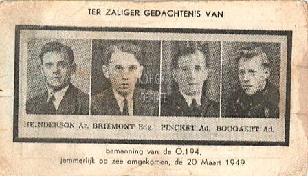 Omschrijving Vergaan op 20 maart 1949 Trefwoorden BIDPRENTJES KLEIN DRUKWERK SCHEEPSRAMPEN O.194 RÉMI MARCEL REMI MARCEL (VISSERSVAARTUIG) SCHEPEN ; REMI MARCEL (VISSERSVAARTUIG) PINCKET ADOLF (1895-1949) (VISSER) BRIEMONT EDGARD (1902-1949) (VISSER) HEINDERSON ARMAND (1921-1949) (VISSER) BOGAERT ADOLF (1925-1949) (VISSER) Plaatskenmerk ARCHIEF 110 ARCHIEFDOOS VISSERIJ Inventarisnummers 2008/0514 20/ 03/ 1949 Collectie Archief De Plate Print