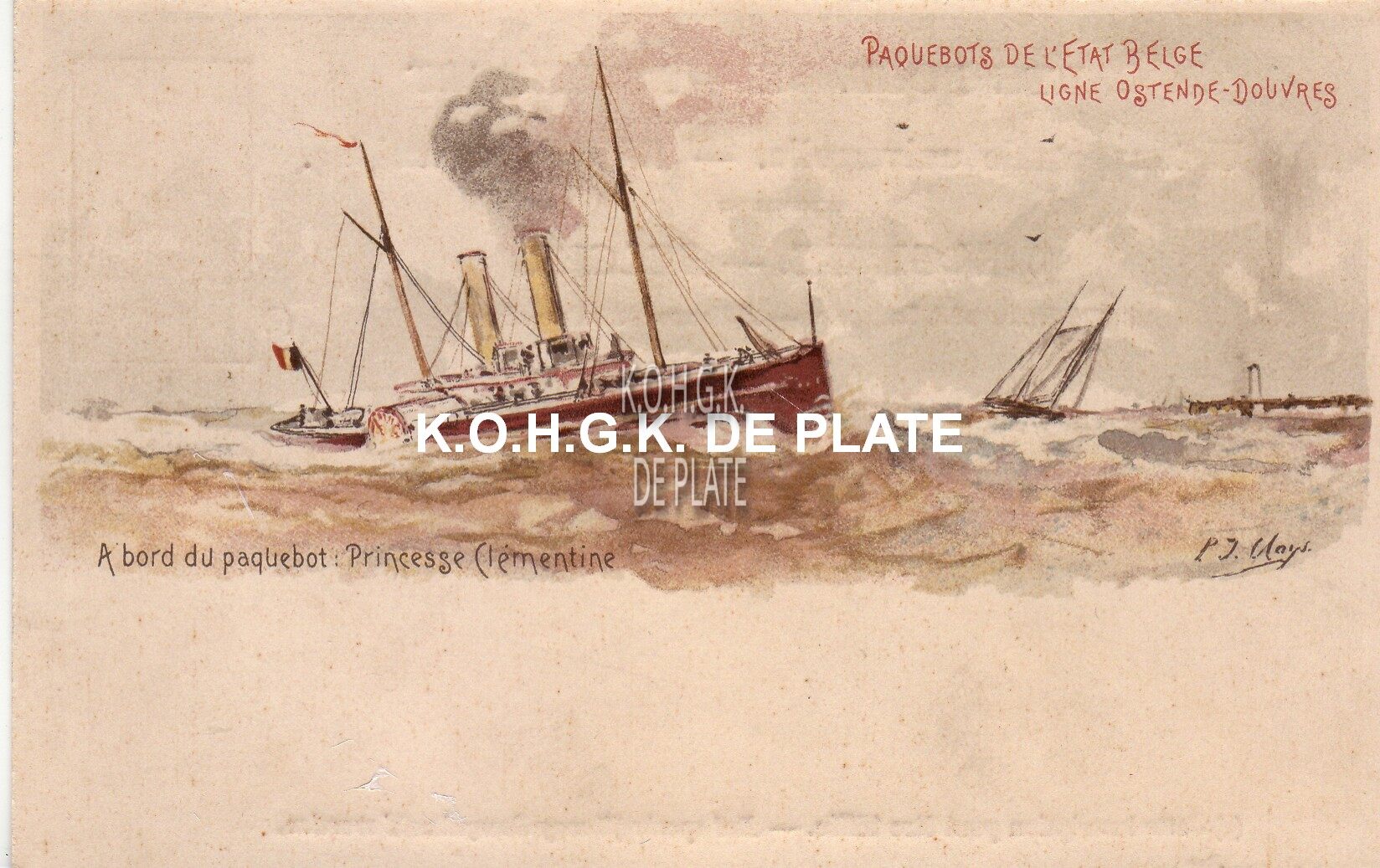 Postwaardestuk van 10 cent. - Paquebots de L'Etat Belge. Linge Ostende-Douvres. A bord du paquebot Princesse Clémentine