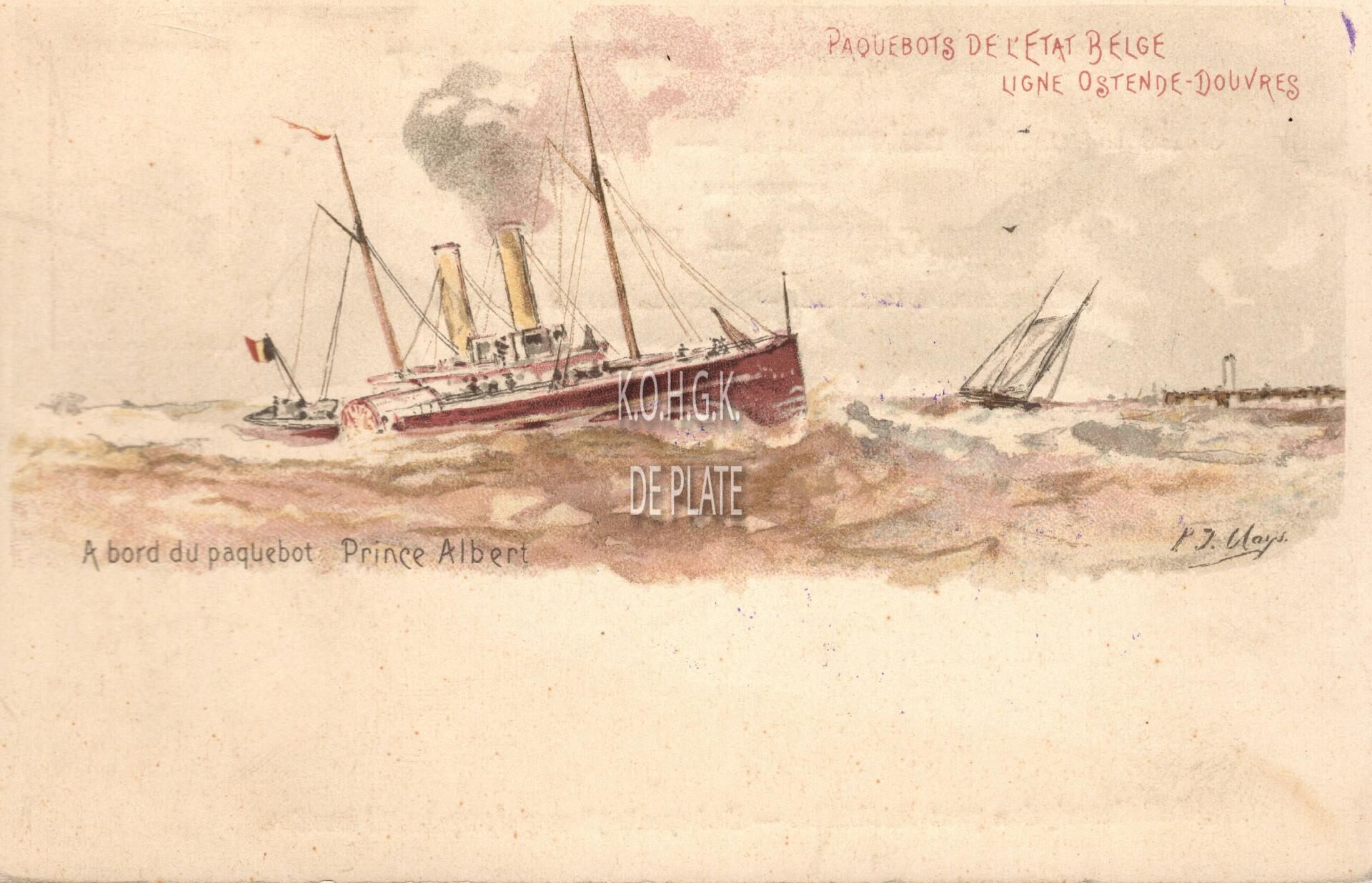 Postwaardestuk van 10 cent. - P.J.Clays. - Paquebots de l'Etat Belge ligne Ostende-Douvres. A bord du paquebot Ville de Douvres