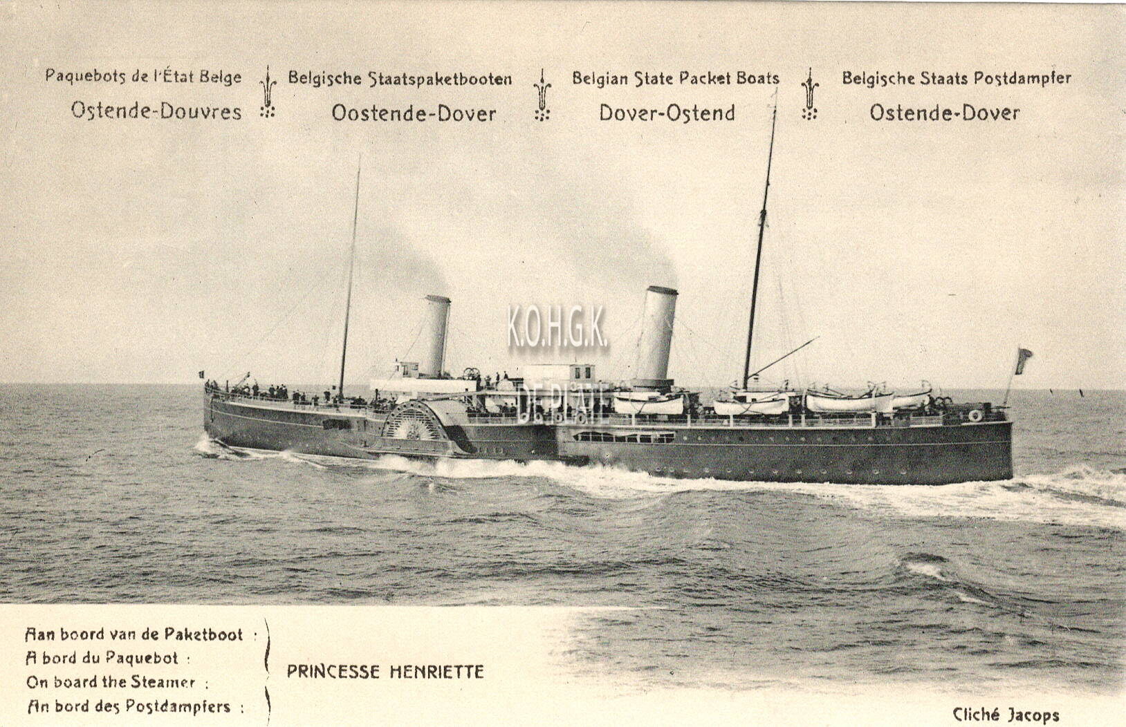 Postwaardestuk 5 cent. - Cliché Jacobs. - Paquebots de l'Etat Belge Ostende-Douvres. Aan boord van de pakketboot Princesse Henriette.