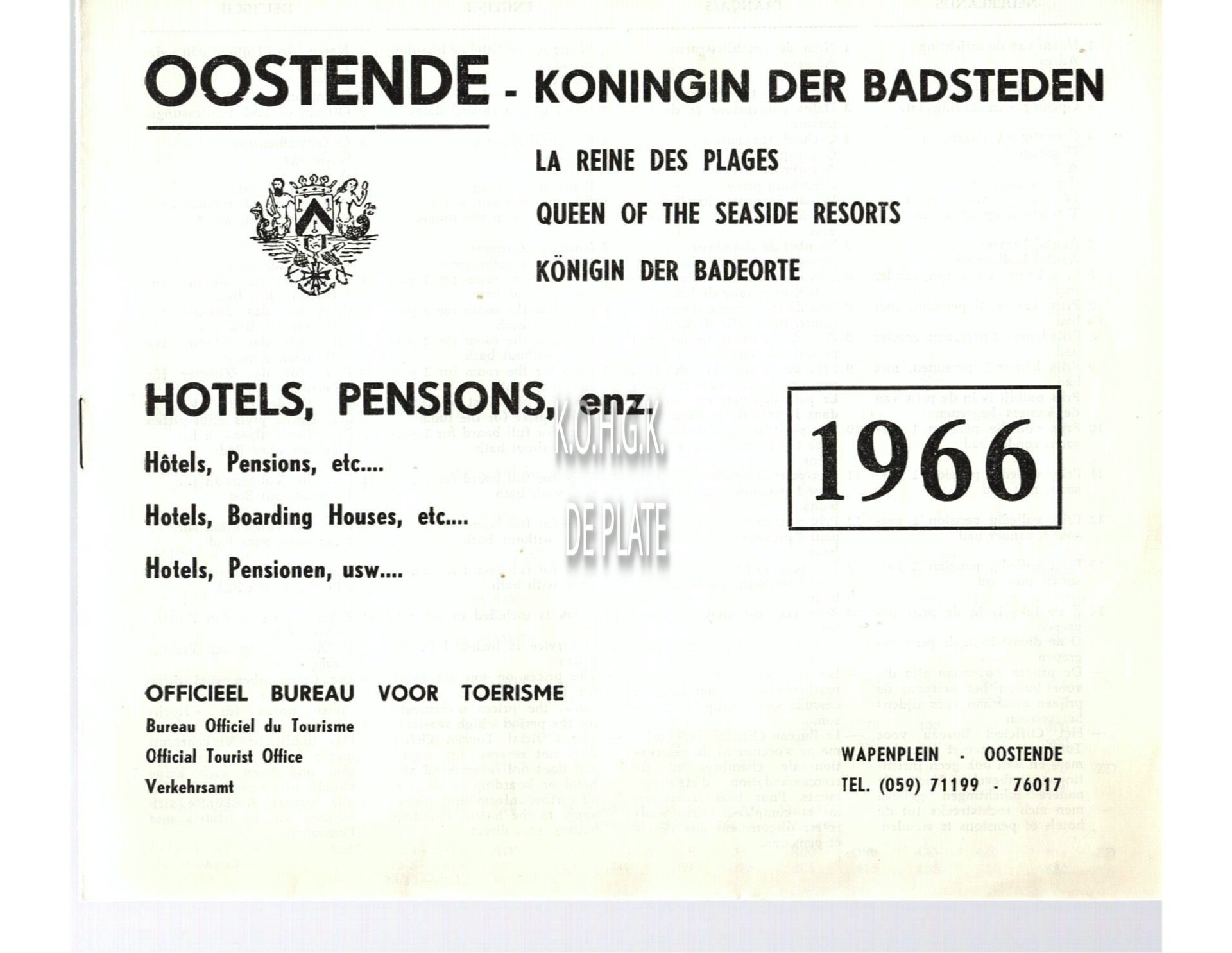 Trefwoorden TOERISME ; BROCHURES HOTELS Plaatskenmerk ARCHIEF 110 ARCHIEFDOOS HORECA Inventarisnummers 1977/1707 1966 Collectie Archief De Plate Vervaardiger Toerisme Oostende Uitgever Drukkerij Gouwy Bestanden 1977:1707.pdf Print