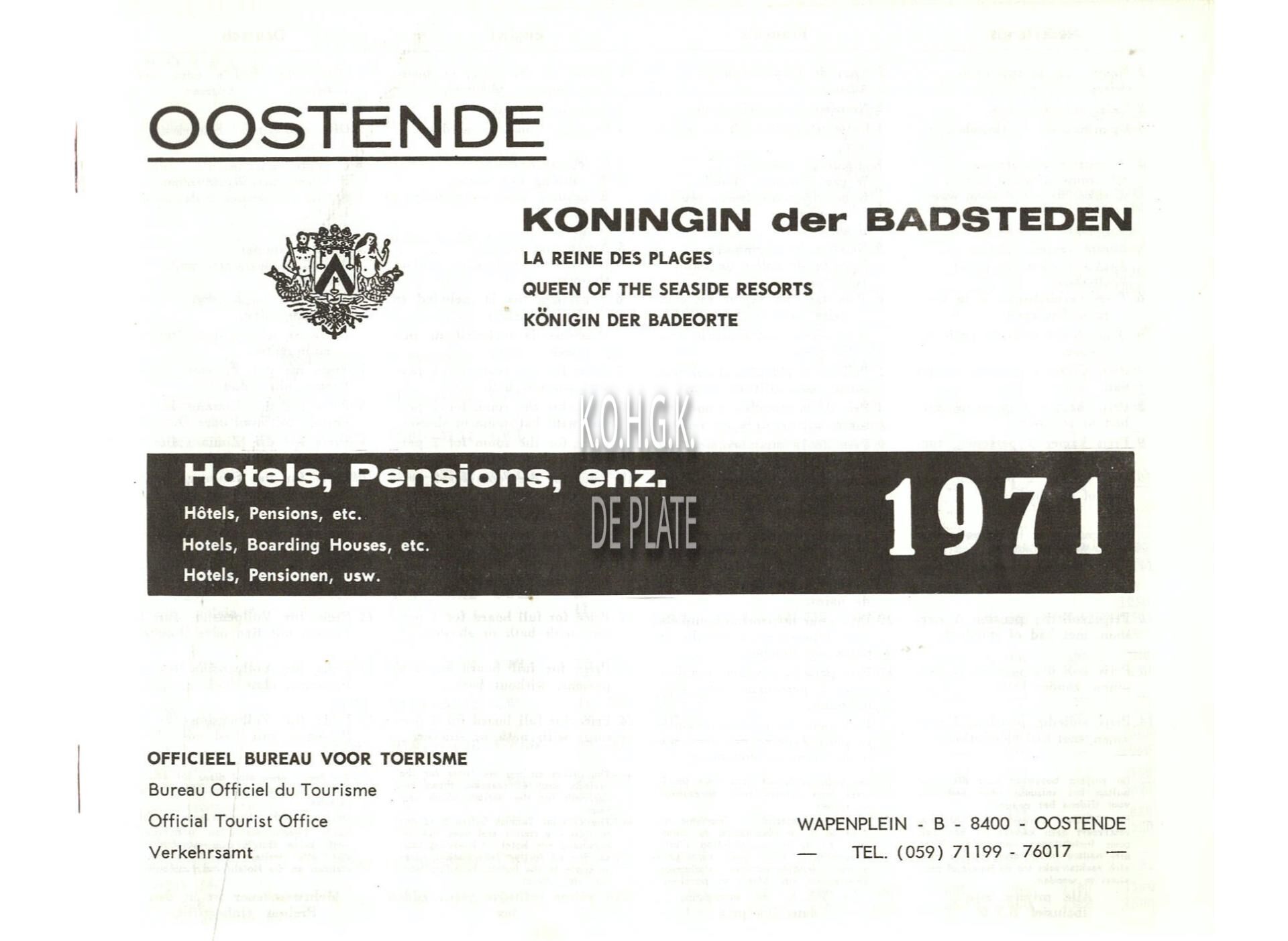 Trefwoorden TOERISME ; BROCHURES HOTELS Plaatskenmerk ARCHIEF 110 ARCHIEFDOOS HORECA Inventarisnummers 1977/1802 1971 Collectie Archief De Plate Vervaardiger Toerisme Oostende Uitgever Van Iseghem Oostende Bestanden 1977:1802.pdf Print