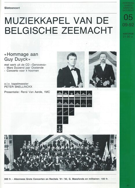 Muziekkapel van de Belgische Zeemacht. "Hommage aan Guy Duyck". Casino Kursaal Oostende. 05/09/1992