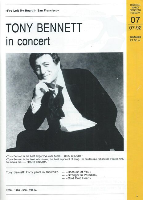 Tony Bennett in concert. Casino Kursaal Oostende. 07/07/1992