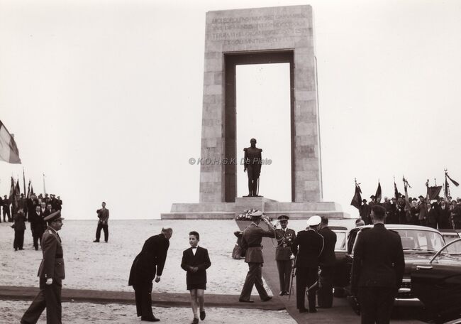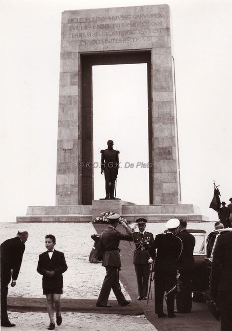 Koning Boudewijn vertrekt na een huldiging aan het monument Leopold I te De Panne.Idem als 2014/0591.