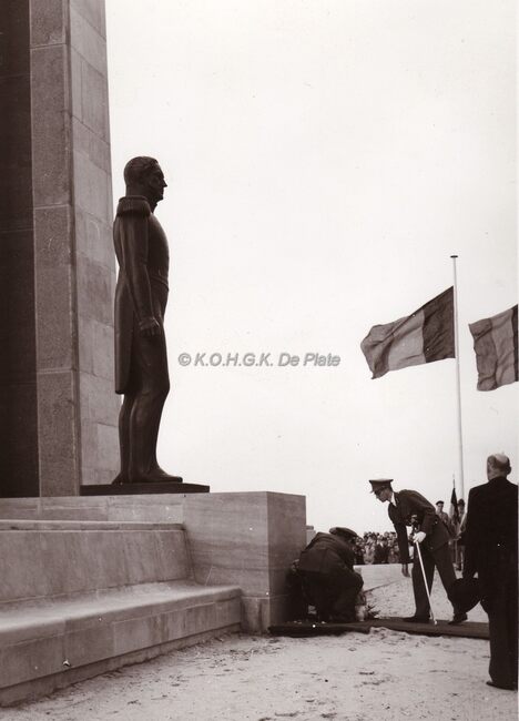Koning Boudewijn bij een huldiging aan het Leopold I monument te De Panne.