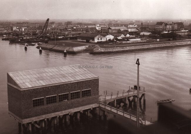 Zicht op de vissershaven van Zeebrugge.Links achteraan de vismijn.