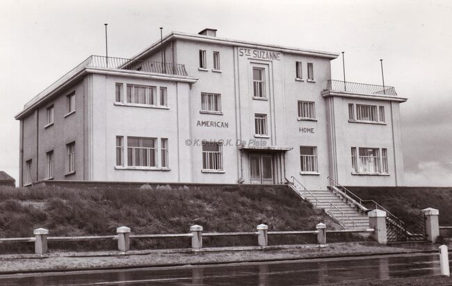 Formaat : 13 x 18 cm. - Het "roze huis" of home Sainte Suzanne op de Zeedijk (Raversijde), 366. Vrijstaand in de duinen gelegen appartementsgebouw, oorspronkelijk "American Home for Orphan Girls Sainte…