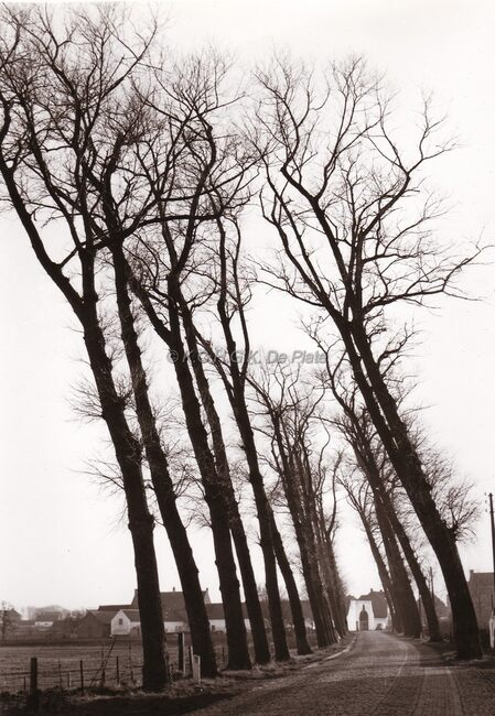 De dreef naar de abdijhoeve te Oudenburg.