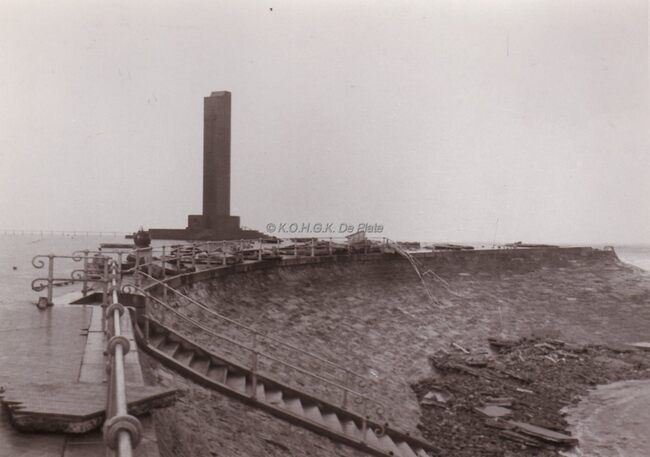 Zeeheldenplein met onafgewerkt "Monument der Zeelieden", toestand na de zware storm van 01-02-1953.