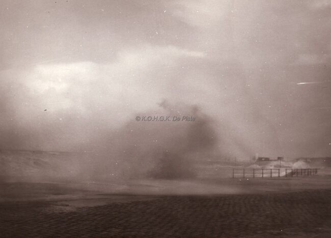 Het Zeeheldenplein bij zware storm.Rechts klein strand.Het monument der Zeelieden staat er nog niet.