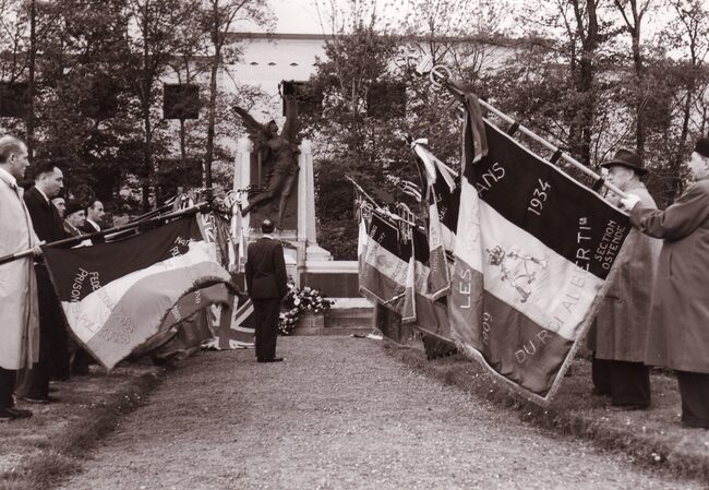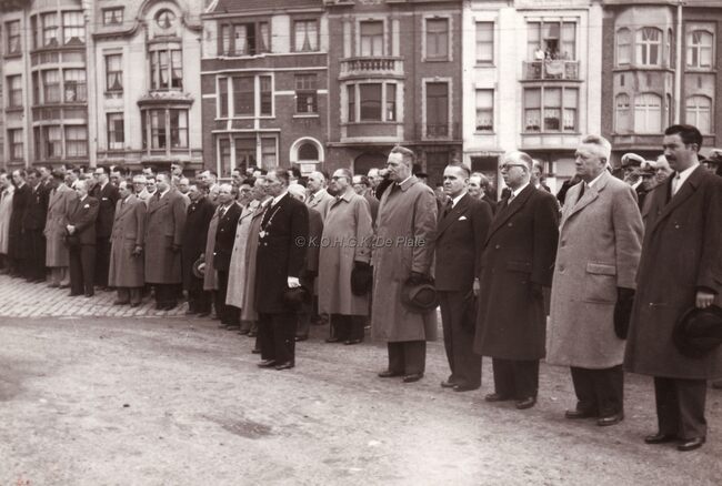 OUDSTRIJDERSGRAAF DE SMET DE NAEYERLAANDE KINDER ROGER (1919-1984) (POLITICUS PROVINCIEGOUVERNEUR)VROOME EMIEL (1886-1971) (POLITICUS)SERRUYS HENRI LOUIS EMILE DESIRE (1888-1952) (POLITICUS BURGEMEESTER)PLECHTIGHEDENFOTO'SOORLOGSMONUMENTEN3DE LINIEREGIMENT23STE LINIEREGIMENTMONUMENT VOOR DE GESNEUVELDEN VAN HET 3DE 23STE 33STE EN 53STE LINIEREGIMENTVAN GLABBEKE ADOLPHE (1904-1959) (BURGEMEESTER)
