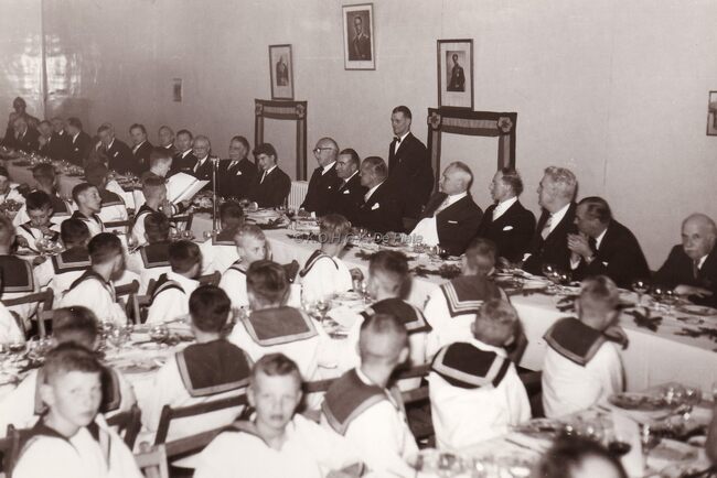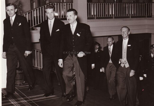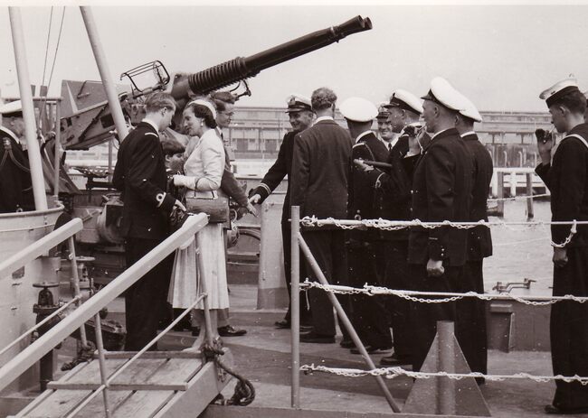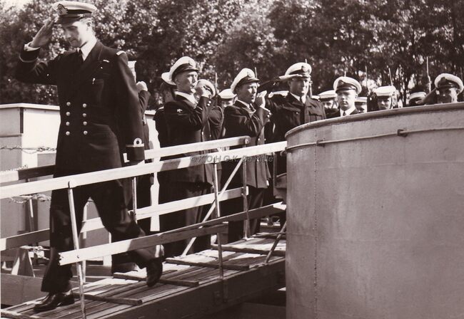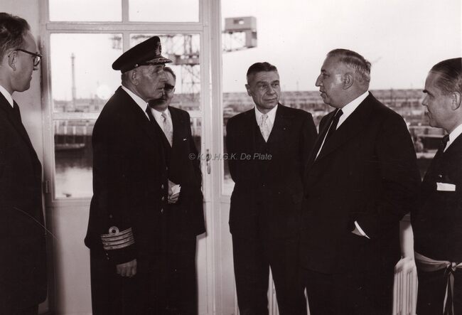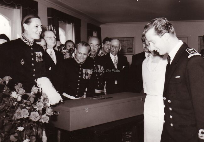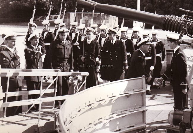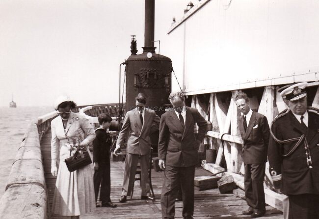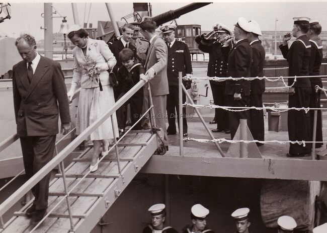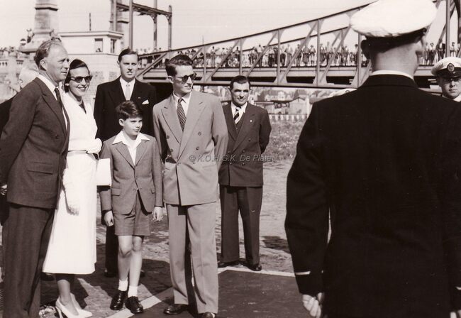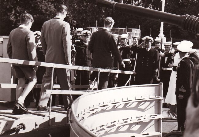 FOTO LUCLEOPOLD III (KONING DER BELGEN) (1901-1983)BAELS LILIAN (1916-2002) (PRINSES VAN BELGIE)BOUDEWIJN (1930-1993) (KONING DER BELGEN)ALEXANDER VAN BELGIE (PRINS) (1942-2009)ROBYNS ARSENE (1925-2006) (MILITAIR)ALBERT II (KONING DER BELGEN)OOSTSTAKETSELF.910 VICTOR BILLET (FREGAT)SCHEPEN ; F.910 VICTOR BILLET (FREGAT)ZEEMACHT ; ALGEMEEN