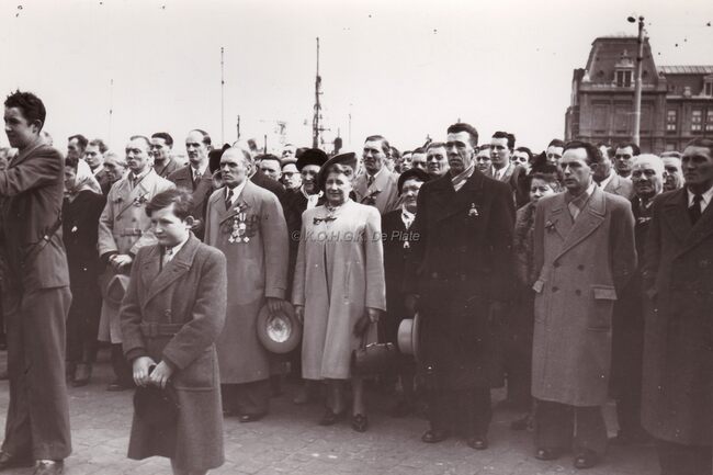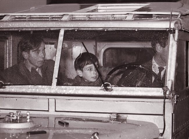 Peter TOWNSEND,die destijds een relatie had met de zuster van de britse koningin, Prinses Margaret, op doortocht te Oostende met zijn twee zonen. Hij was een gewezen RAF piloot uit W.O. II