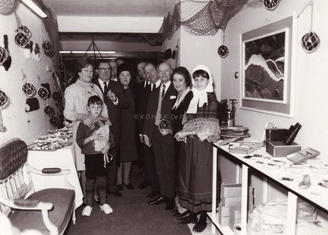 Feestelijke viering van Richard HALLUMIEZ,uitbater van een schelpenwinkel op de Zeedijk.Hij staat centraal.