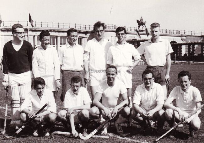 Eclair Hockey Club op het plein achter de Koninklijke Gaanderijen waar thans het stedelijk zwembad staat.op de achtergrond de Koninginnelaan en de Drie Gapers. Staande tweede van links Eric VAN OYE,vijfde ..........…