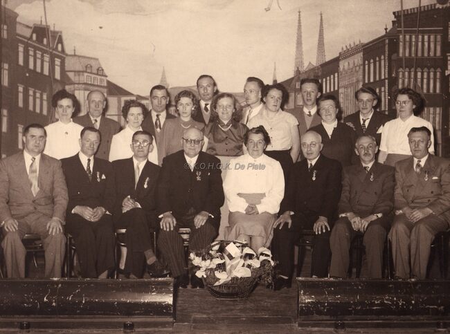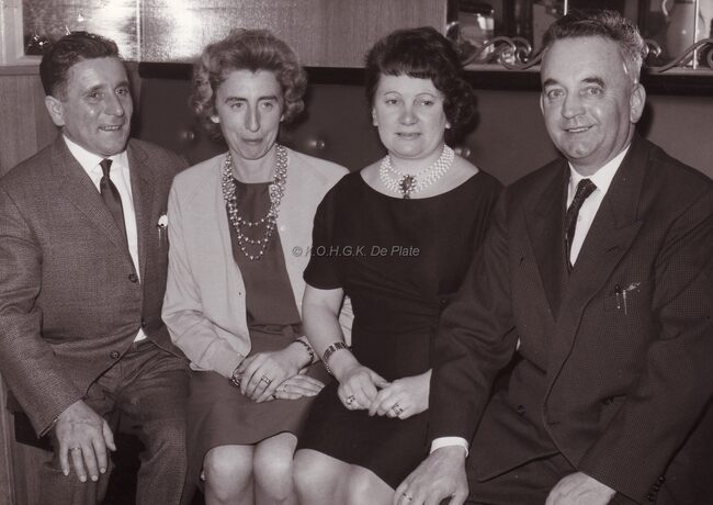 Burgemeester Jan PIERS en echtgenote op het personeelsfeest van "De Zeewacht". Naast hen uitgever, Charles ELLEBOUDT en echtgenote.