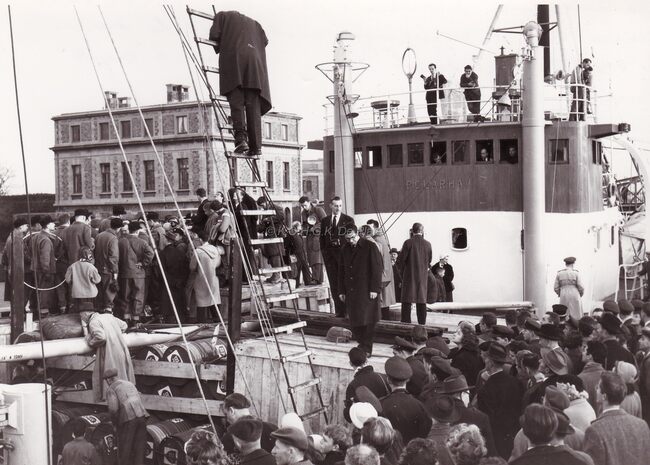 Formaat : 13 x 18 cm. - De "Polarhav" ligt aangemeerd in de haven bij de Havenkapiteinsdienst. Met dit schip nam België deel aan de expedities naar de Zuidpool. Er is duidelijk massale belangstelling. Links met…