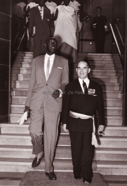Burgemeester Adolf Van Glabbeke ontvangt de Mwami van Rwanda op het dd. stadhuis (huidig gerechtshof).