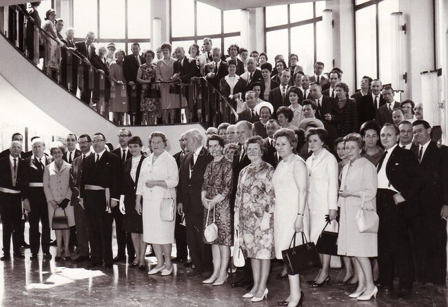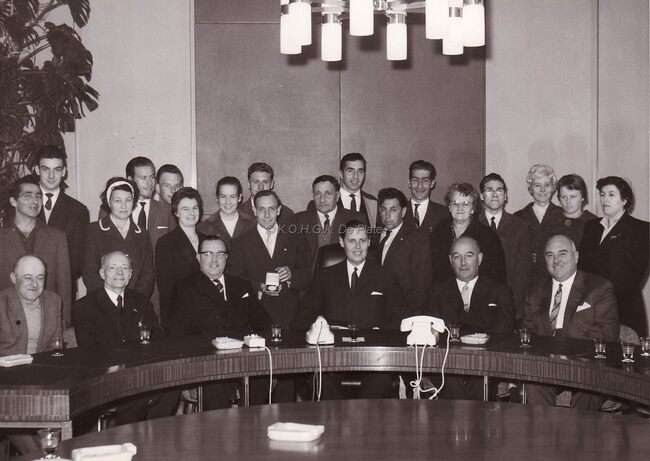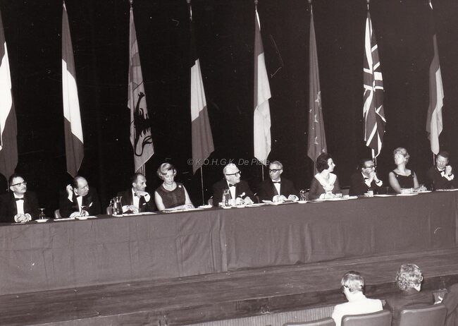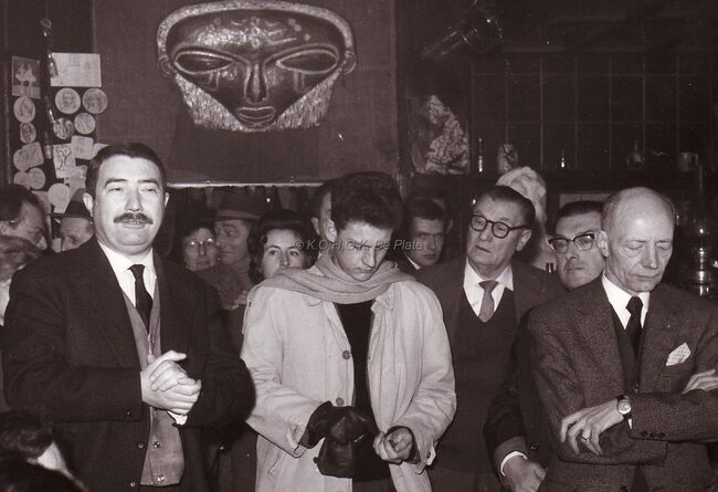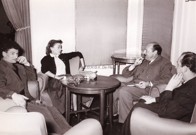 FOTO LUCDELORME DANIELE 1926-2015) (ACTRICE)LANOYE ROBERT (1909-1997) (JOURNALIST REDACTEUR AUTEUR)HERMANS JOHN (JOANNES) (1925-1981) (JOURNALIST POLITICUS)ROBERT YVES (1920-2002) (ACTEUR REGISSEUR)COLOMBE (TONEELSTUK)TONEELSTUKKENKONINKLIJKE SCHOUWBURG (VAN ISEGHEMLAAN) ; TONEELANOUILH JEAN (1910-1987) (TONEELSCHRIJVER)
