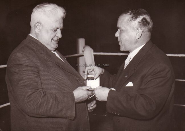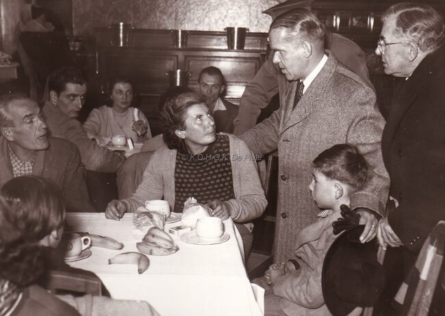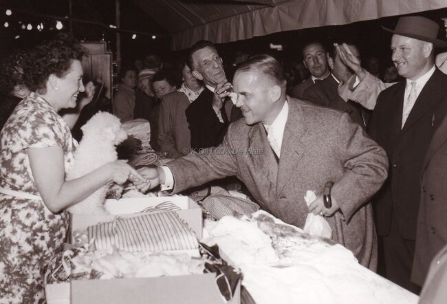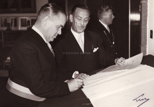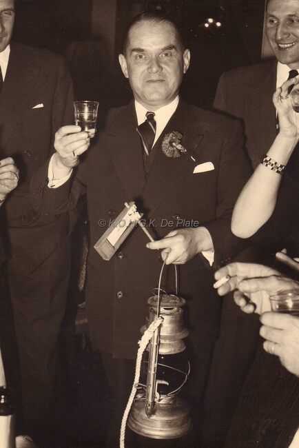 Met burgemeester Adolf Van Glabbeke. Achter hem Max Liedts, juwelier.