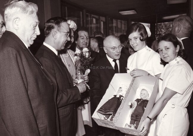 "Vermits het jaar 1956 vermeld staat, betreft de foto kennelijk de inwijding van de nieuwe materniteit "Monica" in de Ooievaarslaan naast de (sedert 1929 bestaande Heilig Hartkliniek in de Frère Orbanstraat…
