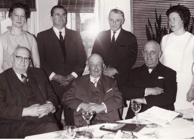 Een onbekende wordt gevierd bij hem ten huize,links vooraan zit Michel SURMONT stadssecretaris.