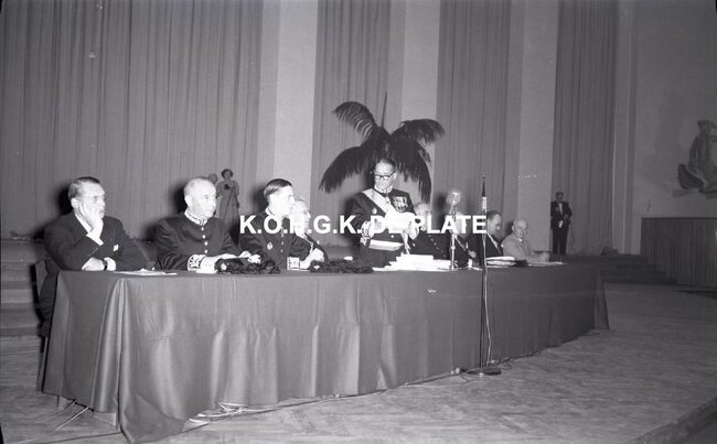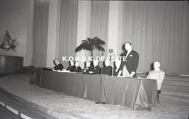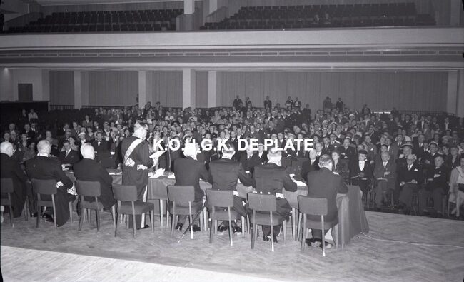 Negatief : 6 x 9 cm. - De academische zitting in de concertzaal. Schepen Emiel Vroome houdt zijn toespraak.
