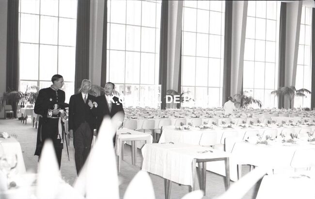 Negatief : 6 x 9 cm. - Rondleiding met minister Ludovic Moyersoen, schepen Jan Piers en Roger De Ramée, directeur van de Kursaal.