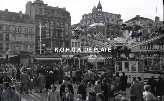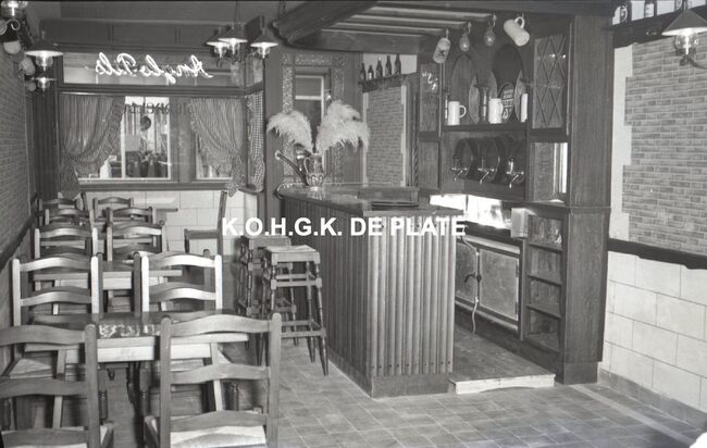 Negatief : 6 x 9 cm. - Op zondag 21 november 1954 werd hier onze vereniging als folklorevereniging "De Plate" symbolisch boven de doopvont gehouden. Tot de talrijke groep van stichters en medestichters behoorden…