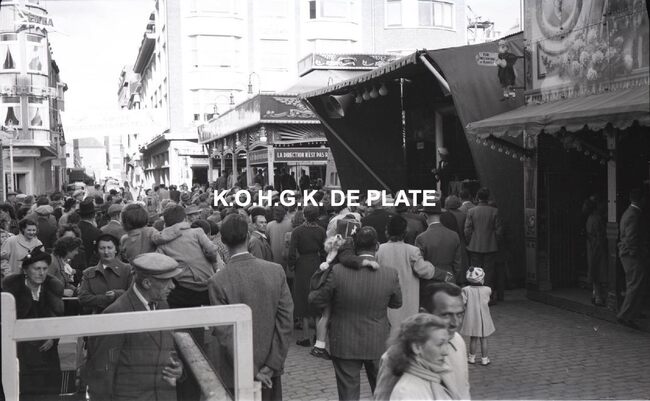 Negatief : 6 x 9 cm. - Het publiek nabij de hoofdingang van de Kursaal langs de Van Iseghemlaan. Links, de Leopoldlaan.