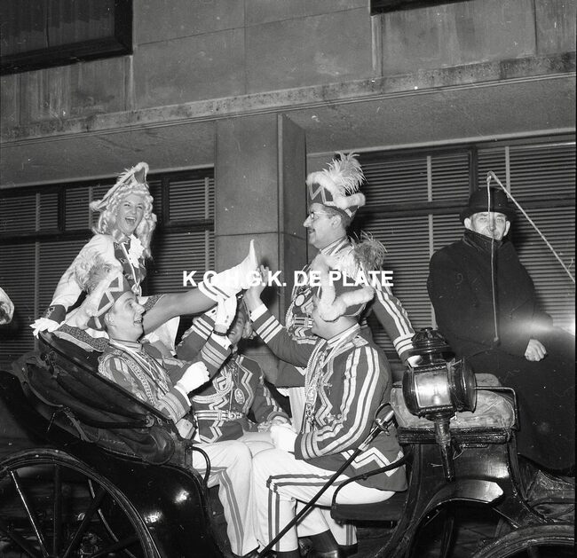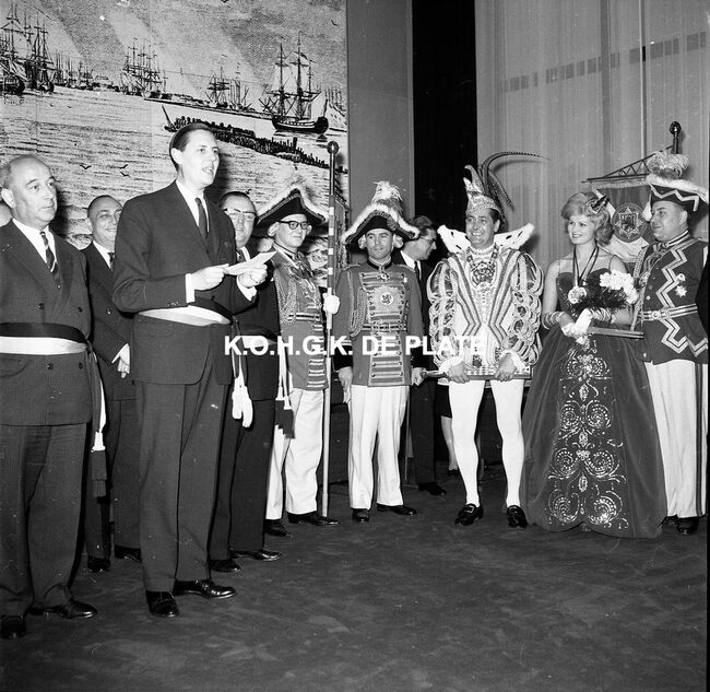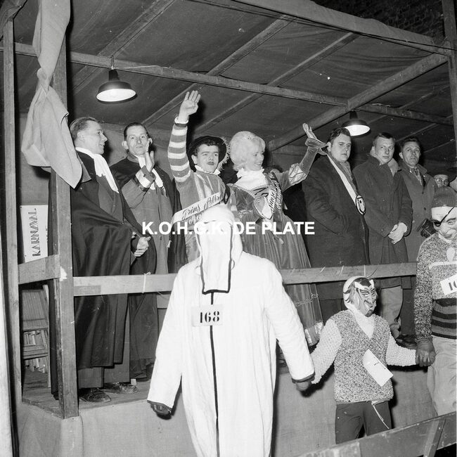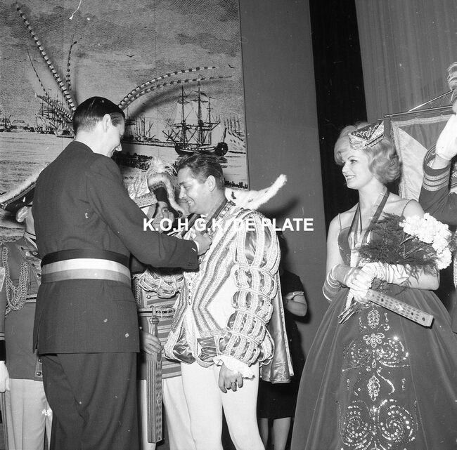 Negatief : 6 x 9 cm. - Prins Carnaval van Dusseldorf op het "Garnaalbal" van de "Orde van de Garnaal" in het "Wit Paard".