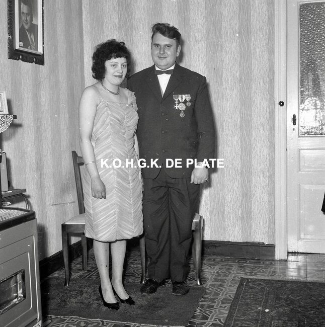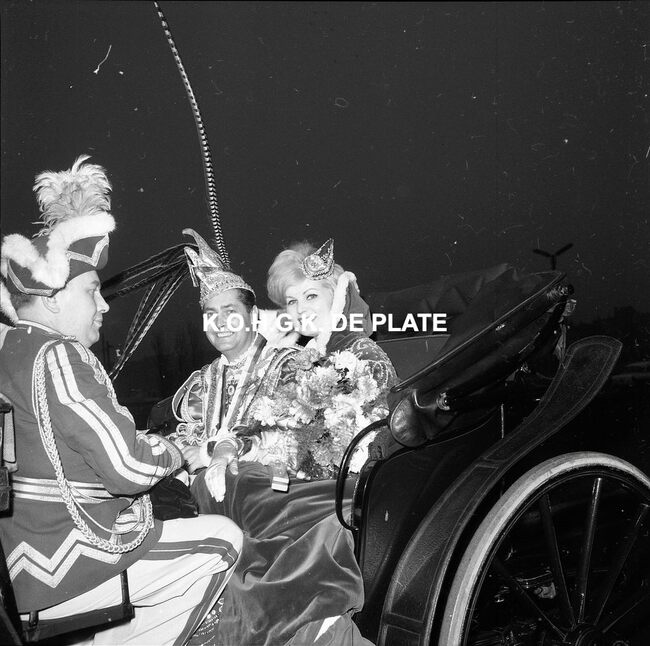 Negatief : 6 x 9 cm. - Het prinsenpaar Albrecht en Isabella van Mariakerke 1963 en achter hen, Norbert Van der Cruyssen