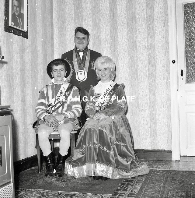 Negatief : 6 x 9 cm. - Het prinsenpaar Albrecht en Isabella van Mariakerke 1963 met naast hen, Norbert Van der Cruyssen