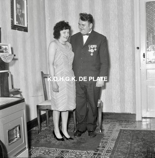 Formaat : 12,5 x 12,5 cm. - Op weg met zijn eredame naar de plechtige ontvangst op het stadhuis. Negatief : Formaat : 6 x 9 cm. - FOTOARCHIEF 202 FOTO LUC 0 DOOS 45 ROL 6