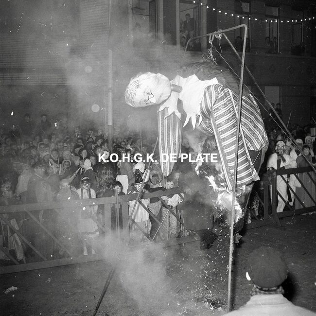 Negatief : 6 x 5,5 cm. - De prins carnaval steekt na afloop van de stoet de pop in brand.
