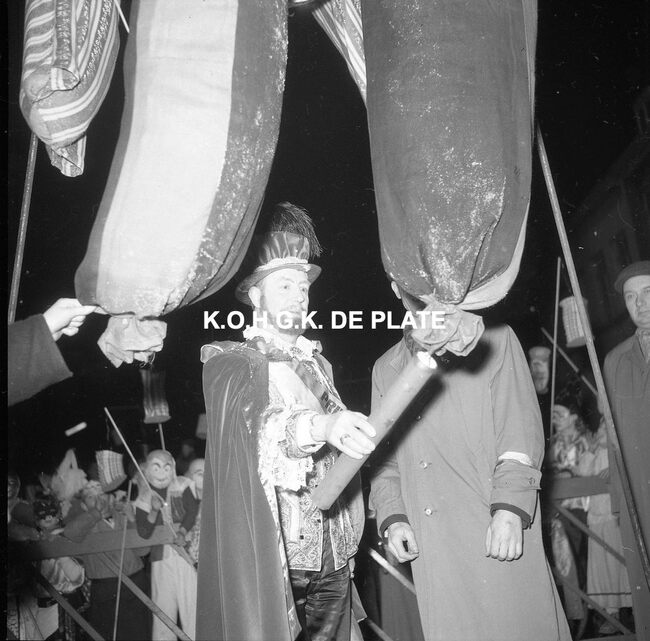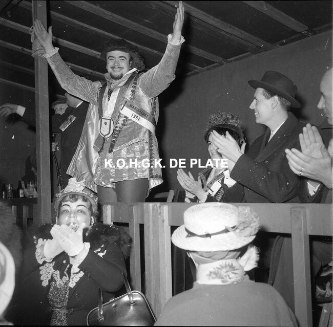 Formaat : 12,5 x 12,5 cm. - Het prinsenpaar Albrecht en Isabella van Mariakerke 1961. Burgemeester Jan Piers was er altijd graag bij. Negatief : Formaat : 6 x 5,5 cm. - FOTOARCHIEF 202 FOTO LUC 0 DOOS 42 ROL 1